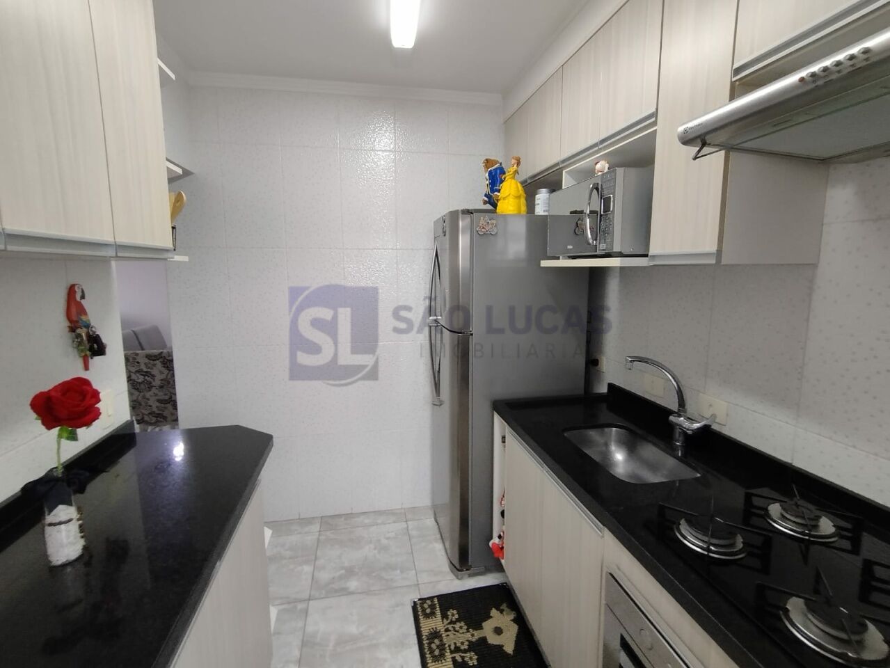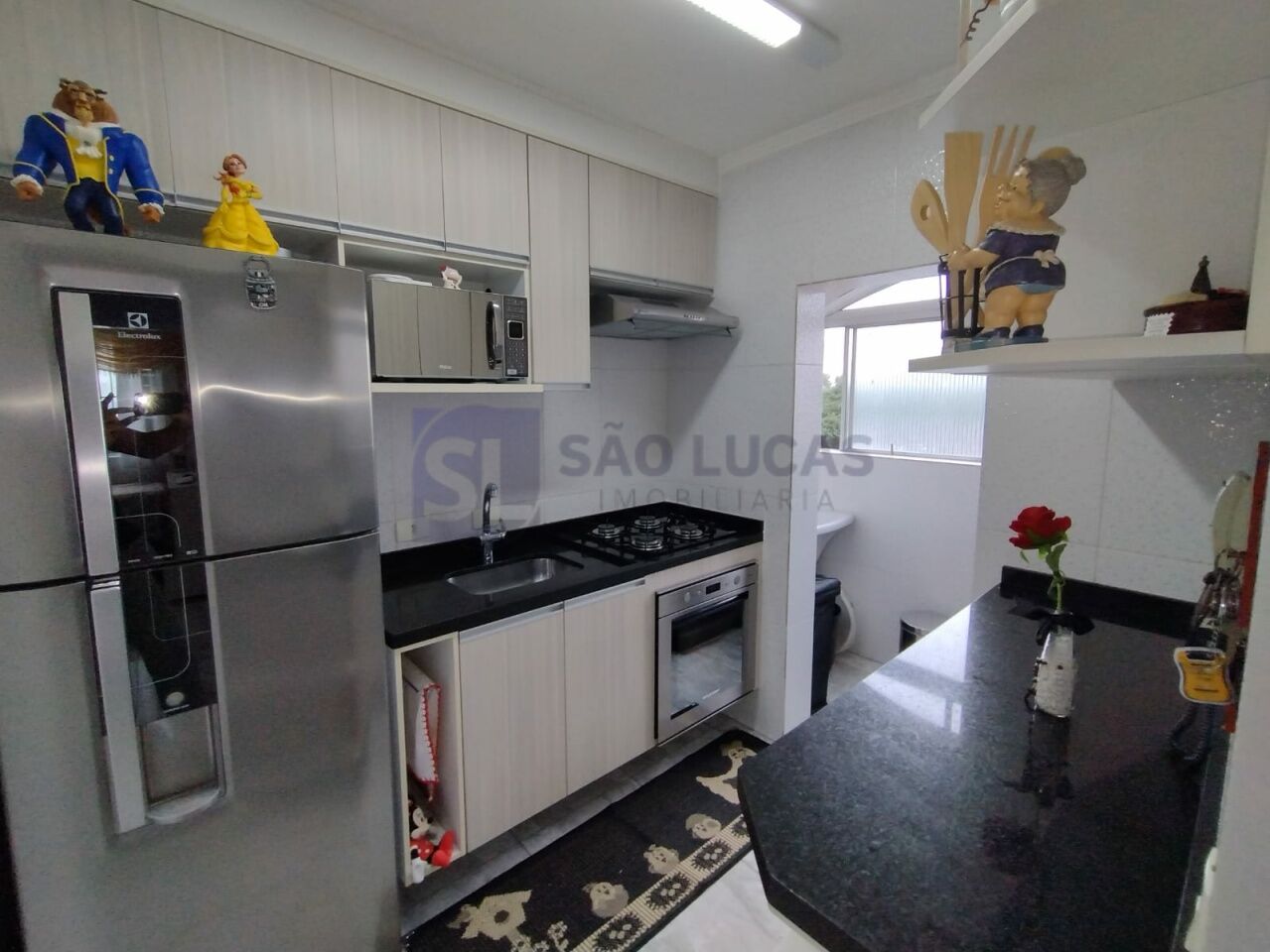 São 2 dormitórios com armários embutidos, 1 banheiro com box em vidro, cuba, e chuveiro a gás, cozinha com armários planejados, e cooktop, salas de jantar e estar com sacada com vista livre, área de serviço, e 1 vaga de garagem.