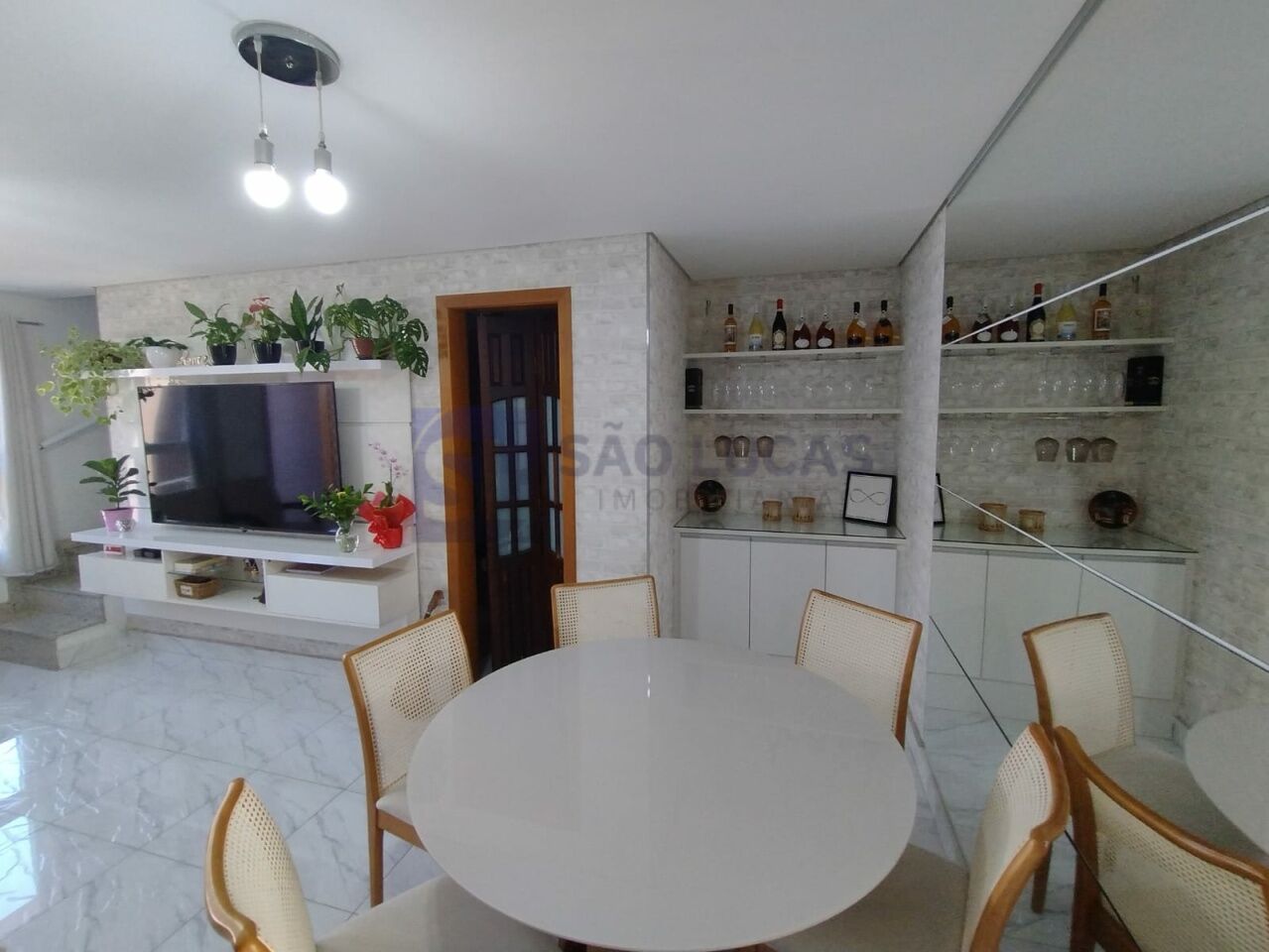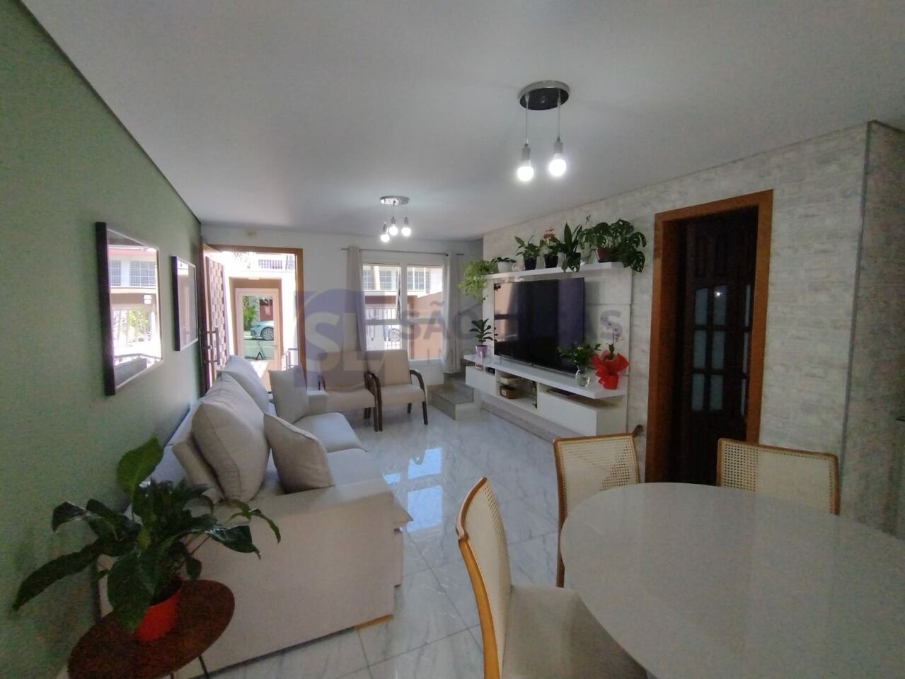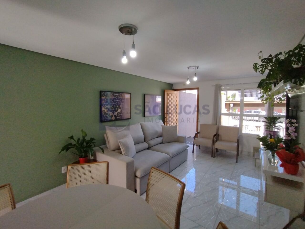 Apresentamos esse belíssimo sobrado com 125m2 de área construída! Semi Mobiliado! Privacidade e conforto com 2 dormitórios, 2 suítes, com ar condicionado e sacada, salas de jantar e estar com sofá e painel, cozinha com armários planejados, cooktop, coifa, forno elétrico, lavabo, área de serviço coberta com maquina de lavar, e 3 vagas de garagem com portão automático.